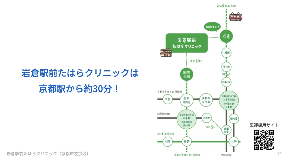 地域に根ざした家庭医療をじっくりと実践したい先生に、岩倉駅前たはらクリニックは本当におすすめです。日々の診療を通して学びを深めながら、自分のペースで成長していける環境があります。この町には、岩倉駅前たはらクリニックが地域とともに育んできた“ケアのこころ”が息づいています。まずは見学からでも、ぜひ一度、その穏やかであたたかな空気を感じてみてください。